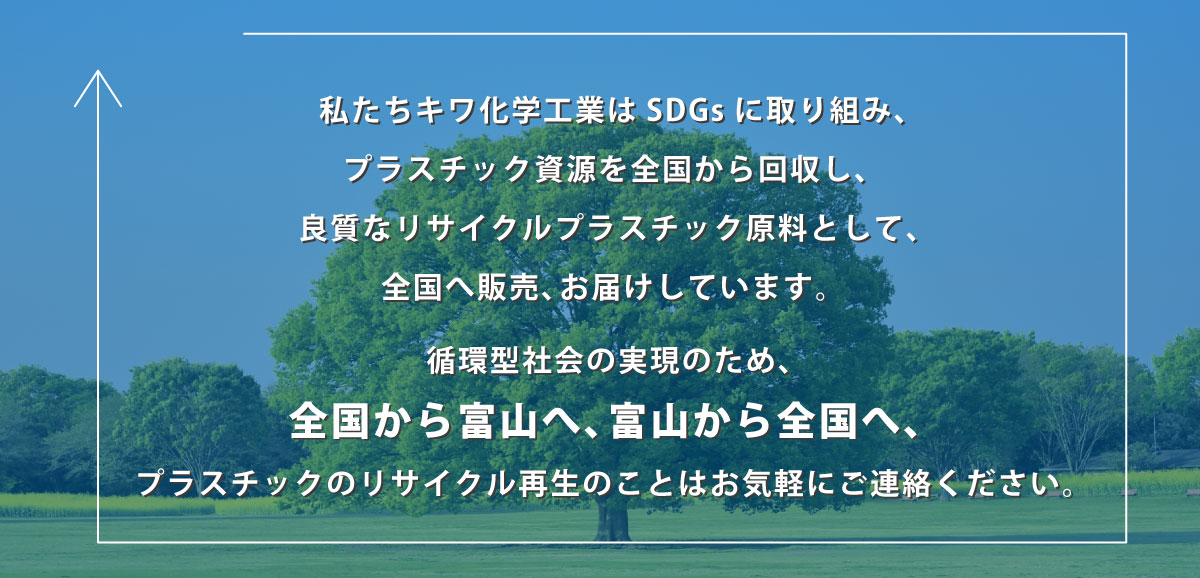 プラスチックのリサイクル再生、プラスチック再生原料、リサイクル商品、プラスチックの有価処分ならキワ化学工業へ。